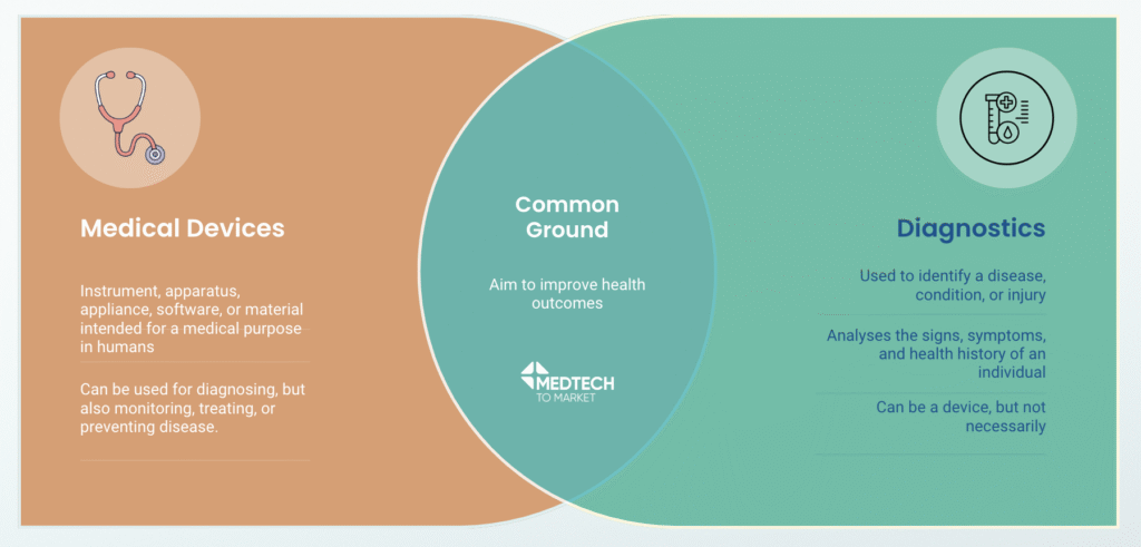 A diagnostic can be a device, but not all medical devices are diagnostics. Sound confusing? Wait until we add ‘in vitro diagnostics’ to the equation.